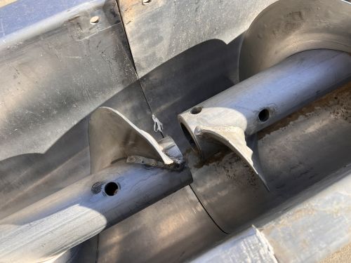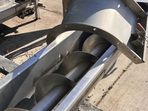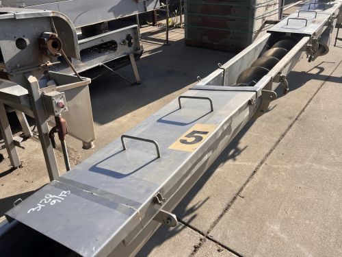 10" diameter x 23'6" long stainless steel screw conveyor, 10" wide trough, 9" diameter screw with 9" pitch, with trough covers and a 5hp 230/460/3/60 gearhead drive kit, requires assembly, good condition, as is *Priced reassembled and complete.