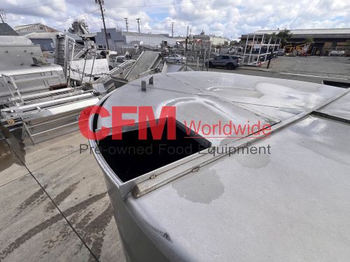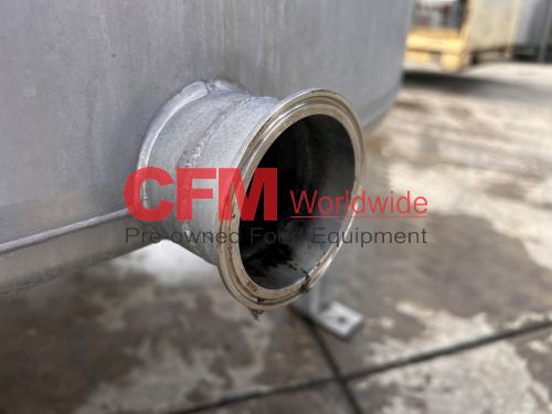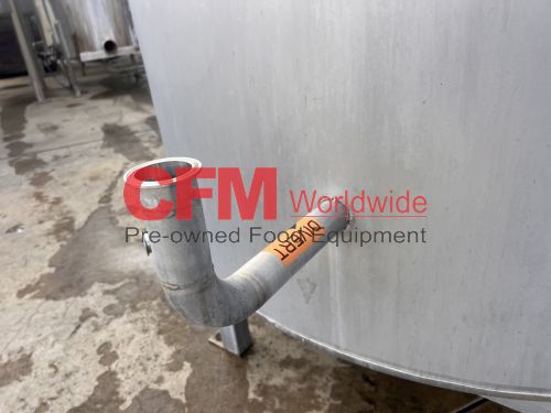 1000 gallon stainless steel vertical tank, 64" diameter x 68" tall, with lid, flat bottom with a 4" discharge, 4) 2" side infeeds, 2) 3" side infeeds, 92" high, stainless steel legs, as is, good condition.