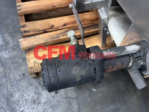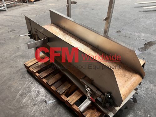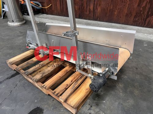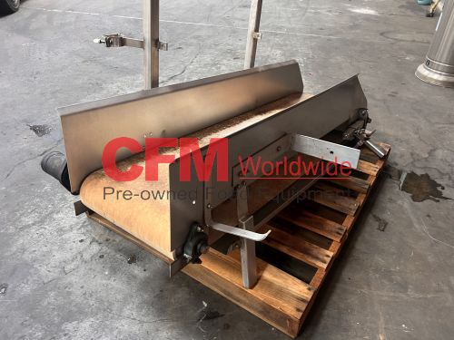 15" wide x 58" long sanitary rubber belt conveyor, hydraulic drive, all stainless steel contact and frame, as is – good condition.