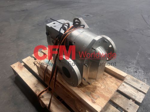 Ampco model ZP2-130 positive displacement pump, 3" four bolt flange fittings, stainless steel contact and construction, missing rotors, serial number 1942576-5-1, as is, good condition.