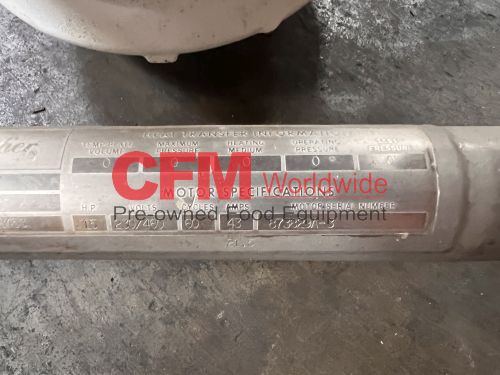Breddo model LDT 75 gallon liquifier, LDT 75 gallon liquifier, all stainless steel contact and frame construction, with hinged top access cover, (2) 2" threaded top inlets, (1) 1" threaded top inlet, 3" threaded discharge, 15hp 1800rpm direct drive, 230/460/3/60, serial number D2669898453, as is, good condition.
