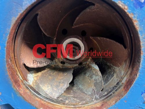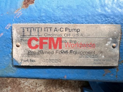 ITT ACC model 2000 mild steel centrifugal pump, 8" x 6", driven by a 40hp 1170 rpm motor, 230/460/3/60, serial number 01-72123, impeller has wear, as is – fair condition.