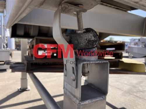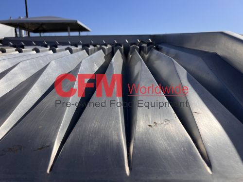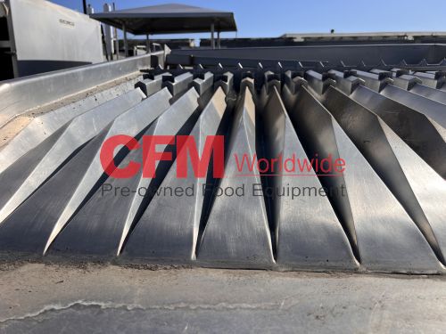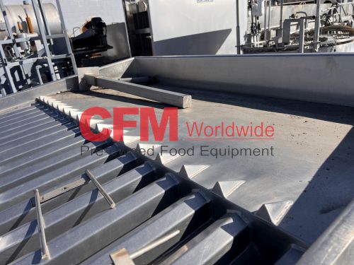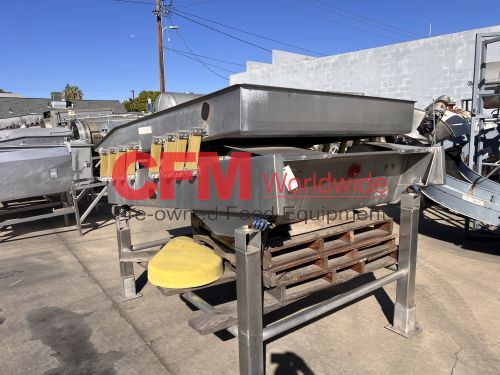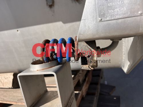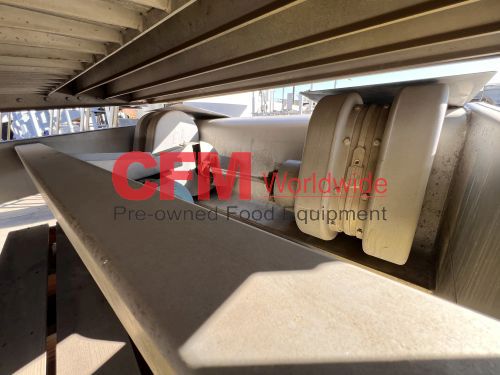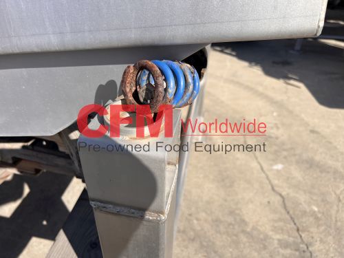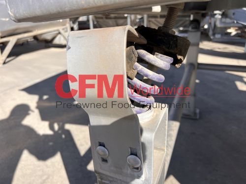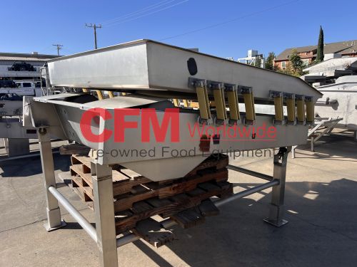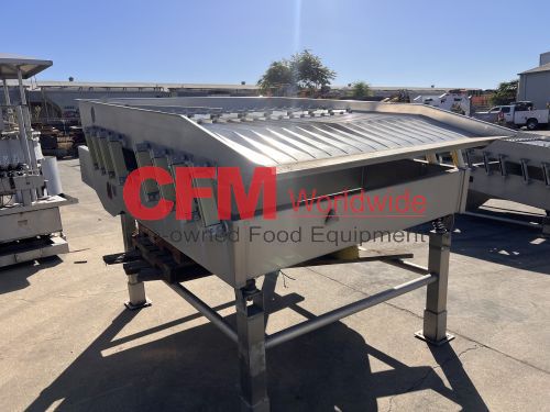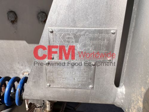 Key 17 lane stainless steel cup down shaker, 72" wide x 8' long, with drive and dual Iso-Flo eccentrics, with lower support frame, spring mounts need replacement, model 601597-1, serial number 99-44580, as is – fair to good condition.