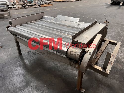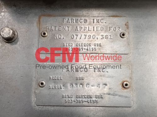 Key-Farmco model SSR sliver remover, all stainless steel construction, (7) 48" wide rolls, 32" long, adjustable gaps, serial number 9306-47, no drive, as is – fair to good condition.