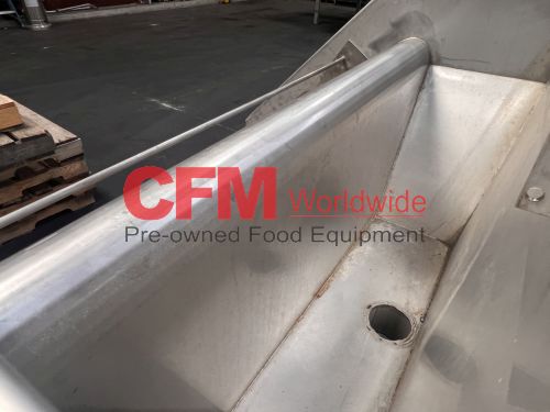 Lyco (style) 48" wide stainless steel parabolic screen with a .010" flat wire screen, 4" infeed, 6" discharge, as is - good condition.
