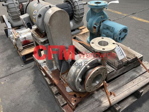 Tri-Clover 4" x 3" stainless steel centrifugal pump, flange fittings, 5hp 1725 rpm direct drive, 230/460/3/60, as is fair condition.