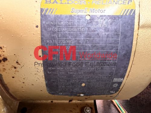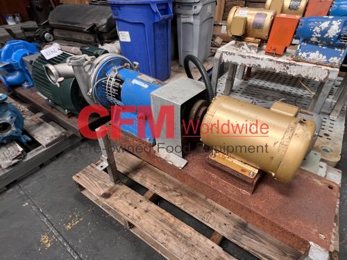 Tri-Clover (Coker) model SP218ME 4" x1.5" stainless steel centrifugal pump, 2hp 1750 rpm 230/460/3/60 direct drive, mild steel base, serial number 88-65829, as is, good condition.
