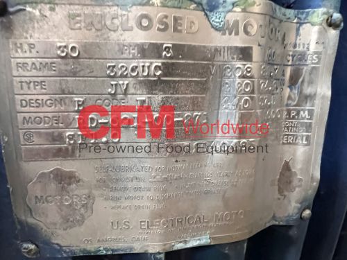 Urschel model MG Comitrol, set up with a 200 blade MicroCut head, 3" inlet, with oil mist system and a 30hp 3600 rpm belt drive, 230/460///60, serial number 1294, as is – good condition.