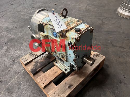 Waukesha model 130 positive displacement pump, 3" I-Line fittings, stainless steel contact parts, no drive, serial number 390222-05, fair to good condition, as is.