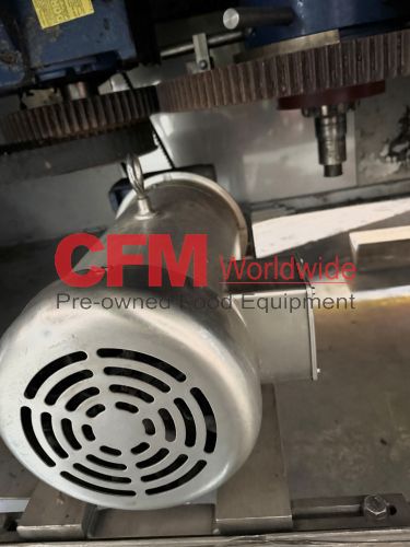 Zilli-Bellini model TC32 thirty two station rotary volumetric pocket filler, set up for 603x700 cans, left-to-right feed, through conveyor to a worm-star infeed, clockwise bowl rotation, air actuated no-can-no-fill, with a rotary brush for pock topping, all stainless steel contact and frame construction, with control panel including an Allen-Bradley MicroLogix 1400 plc, , serial number TC320902, 2002, rebuilt, as is.