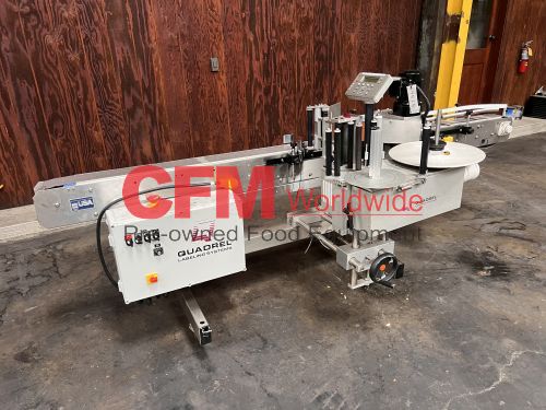 Quadrel front only pressure sensitive labeler for round containers