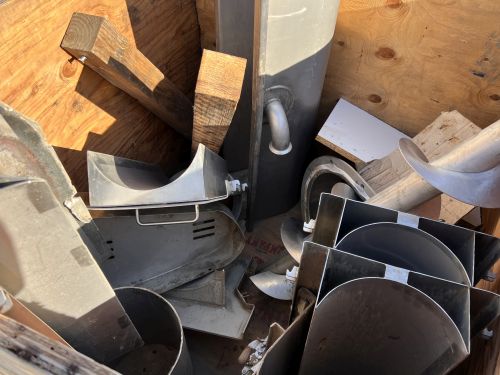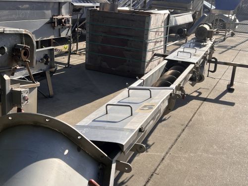 10" diameter x 23'6" long stainless steel screw conveyor, 10" wide trough, 9" diameter screw with 9" pitch, with trough covers and a 5hp 230/460/3/60 gearhead drive kit, requires assembly, good condition, as is *Priced reassembled and complete.