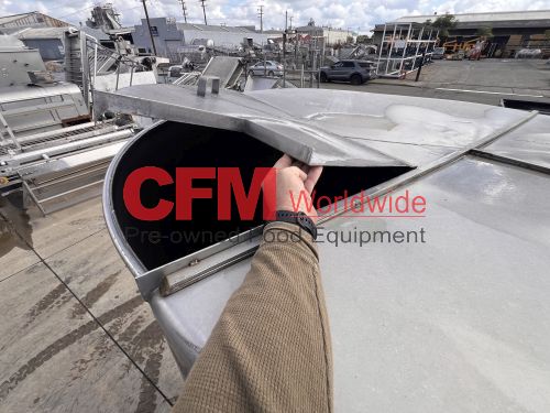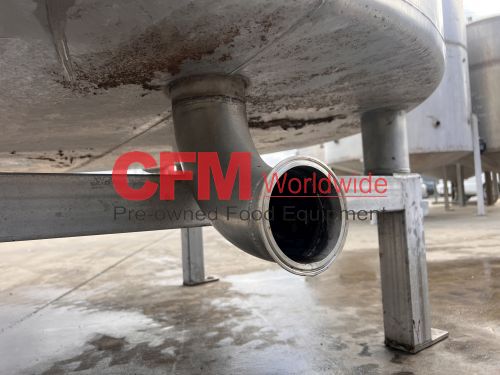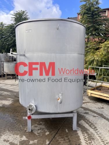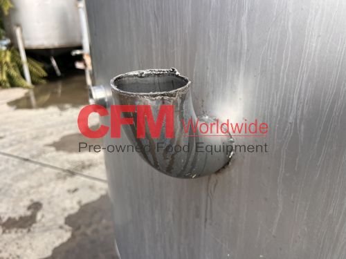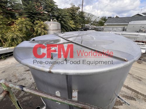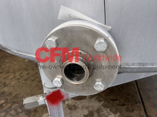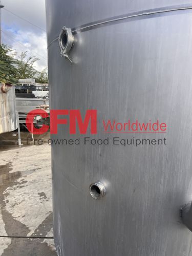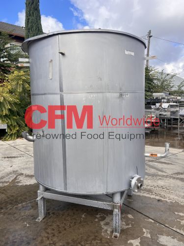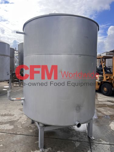 1000 gallon stainless steel vertical tank, 64" diameter x 68" tall, with lid, flat bottom with a 4" discharge, 4) 2" side infeeds, 2) 3" side infeeds, 92" high, stainless steel legs, as is, good condition.
