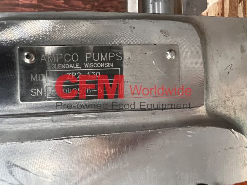 Ampco model ZP2-130 positive displacement pump, 3" four bolt flange fittings, stainless steel contact and construction, missing rotors, serial number 1942576-5-1, as is, good condition.