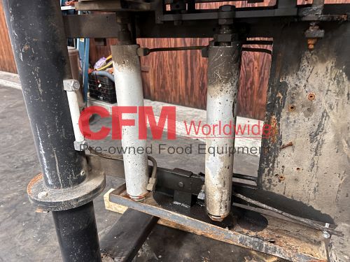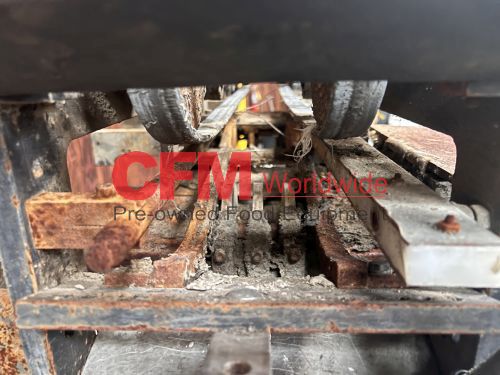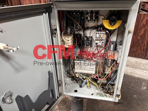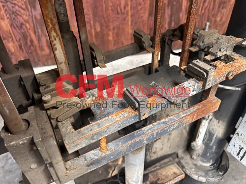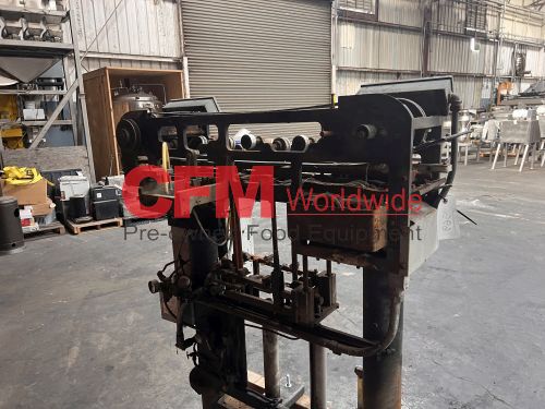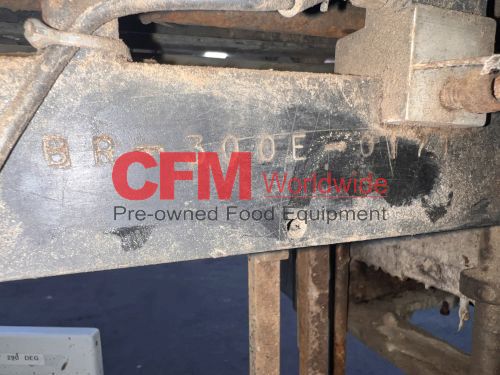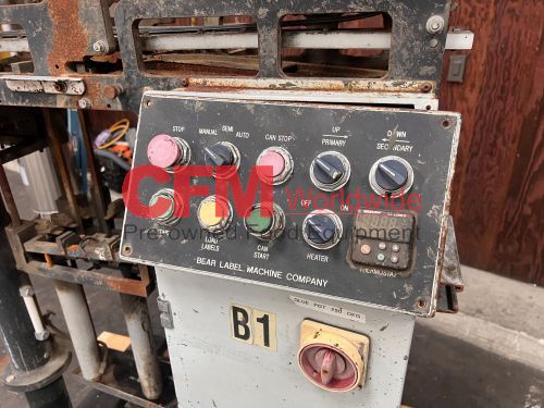Bear horizontal roll through labeler for 300x407 cans, left to right can feed, with standard hot pot and old style paste assembly, continuous feed label bed, with drive and controls, unit requires a full rebuild, serial number BR-300E-017, as is.