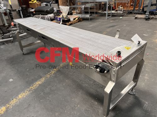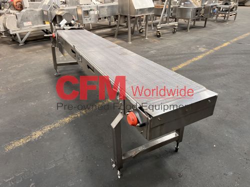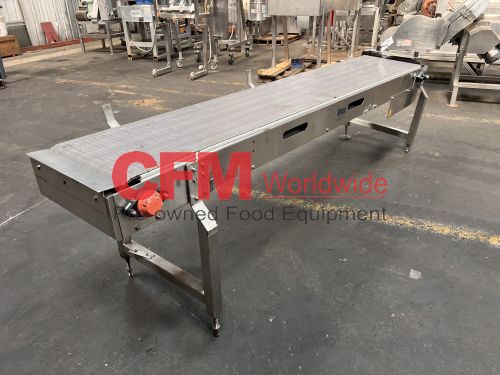 Bevco 18" wide x 9' long stainless steel flattop conveyor, no drive, as is, fair to good condition.