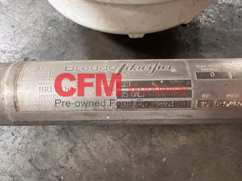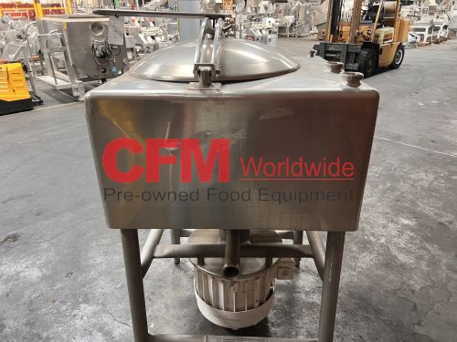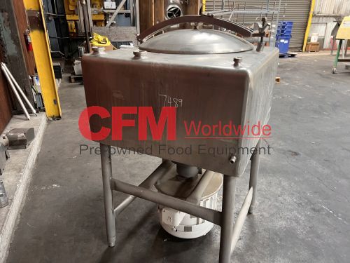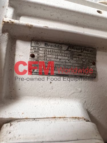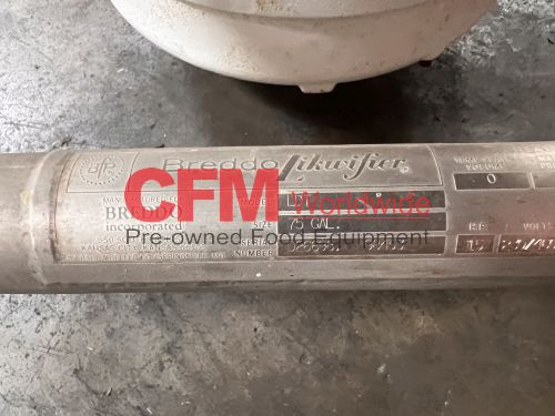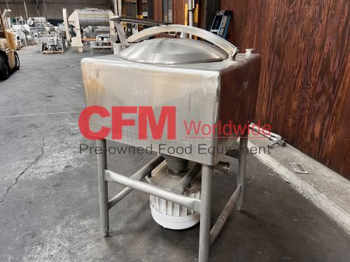 Breddo model LDT 75 gallon liquifier, LDT 75 gallon liquifier, all stainless steel contact and frame construction, with hinged top access cover, (2) 2" threaded top inlets, (1) 1" threaded top inlet, 3" threaded discharge, 15hp 1800rpm direct drive, 230/460/3/60, serial number D2669898453, as is, good condition.