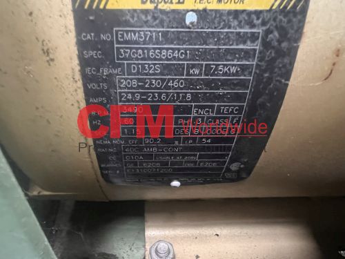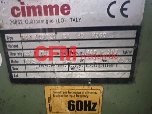 Cimme 7.5hp air blower, type GCH-005020-E4-RD, 3490rpm 230/460/3/60 motor, 6.5" x 9" blower infeed, 8.5" diameter blower discharge, stainless steel enclosure, good condition, as is.