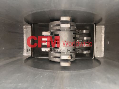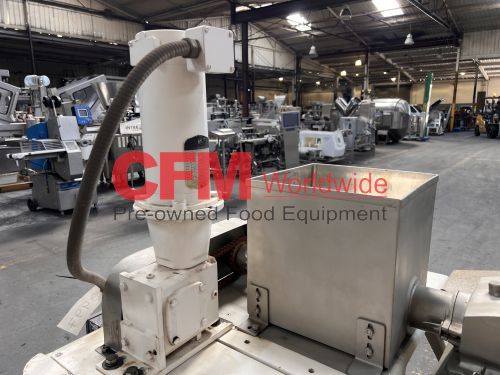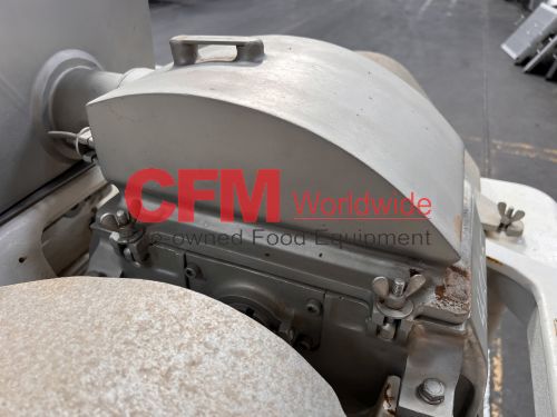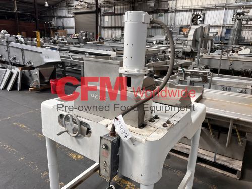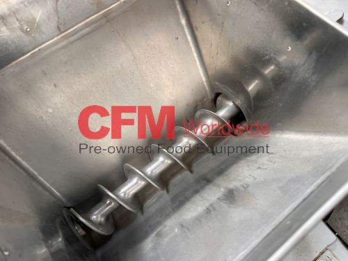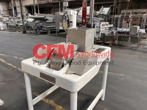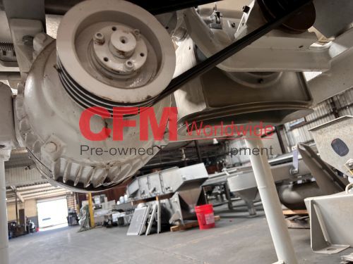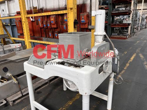 Fitzmill model DAO6 screw fed hammermill, 12" x 12" feed hopper, with a 3" diameter feed screw driven by a 1/2hp 90v gearhead drive, swing type blunt hammers, 7.5hp belt drive, 230/460/3/60 (need to confirm the hp rating), no screen installed, stainless steel contact, painted steel frame, as is, fair to good condition.