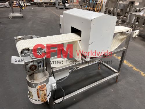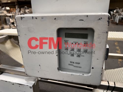 Goring-Kerr TEK-DSP metal detector 3" high x 8" wide aperture, epoxy coated head, 7" wide x 5' long Rex belt conveyor, 1/3hp drive, 230/3/60, last serviced in 2019, as is, fair condition.