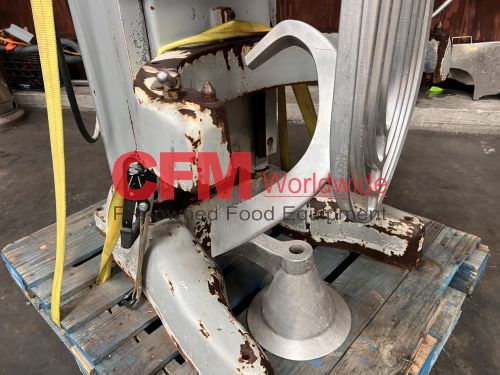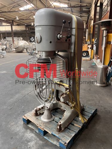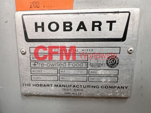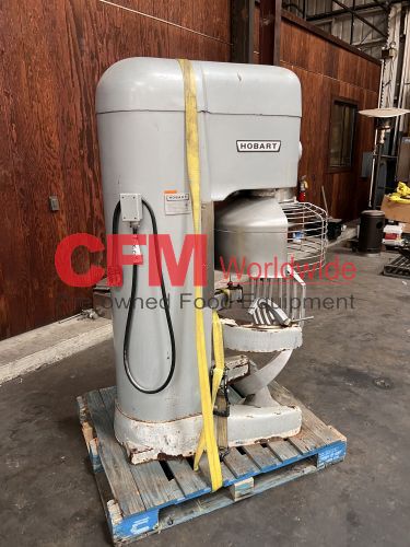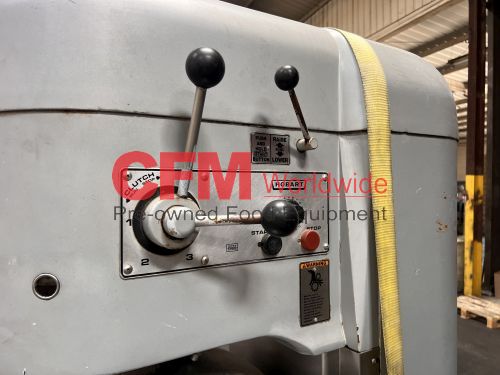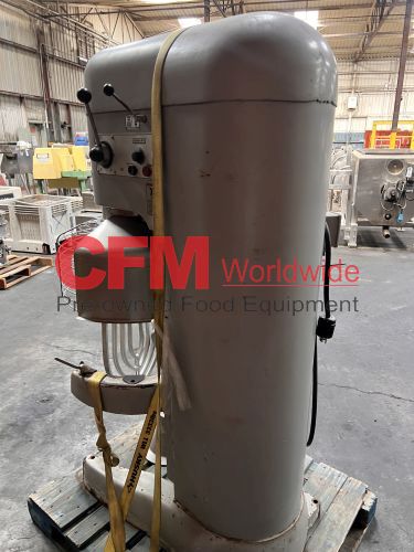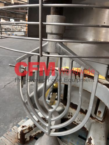 Hobart model V-1401 planetary mixer, 140 quart, 5hp 220/3/60 drive, with controls, with a flat beater and dough hook, no bowl, with controls, serial number 11-128-567, as is, fair condition.