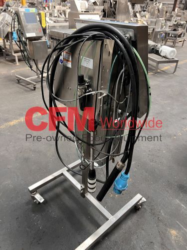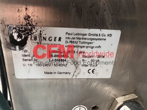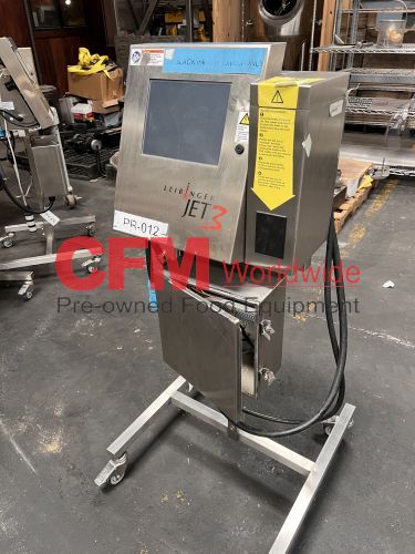 Leibinger JET3+pro ink jet printer, on a stainless steel portable stand, single print head, stainless steel control cabinet, 110/240/1/50/60, serial number LJ-306864, as is, fair to good condition.