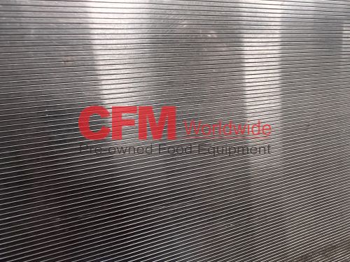 Lyco (style) 48" wide stainless steel parabolic screen with a .010" flat wire screen, 4" infeed, 6" discharge, as is - good condition.