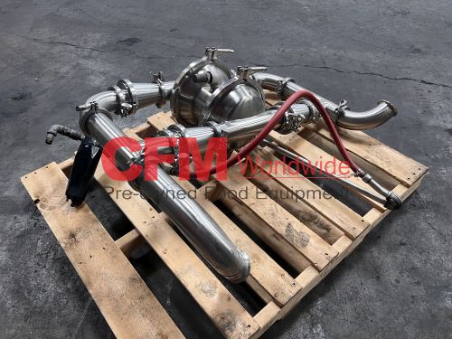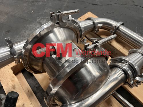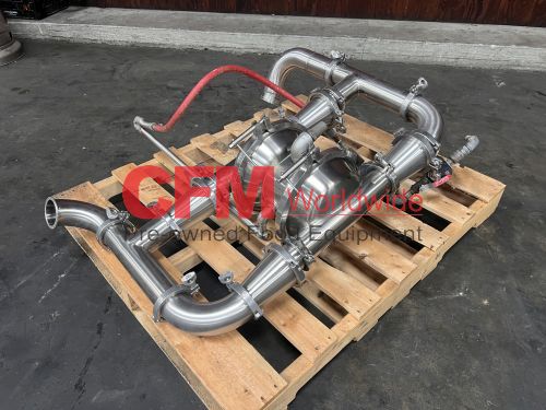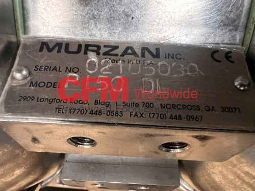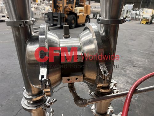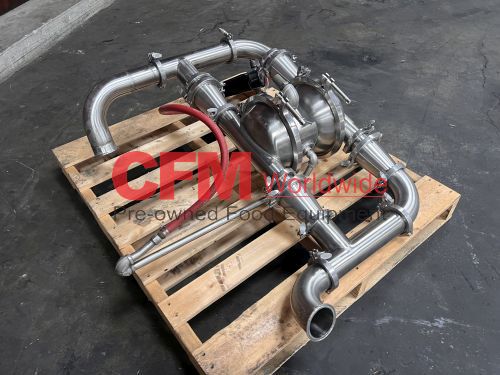 Murzan model P150 DL diaphragm pump, 3" Tri-Clamp ports, all Tri-Clamp connections, with air regulator and mounting bracket, serial number 02105030, all stainless steel construction, as is, very good condition.