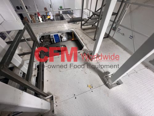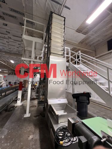 2) 24" wide Z-Bucket elevator, 4' long infeed, 17' high elevation, 6' long discharge, all stainless steel with sanitary plastic buckets that measure 6" wide x 24" long x 4" deep, with drive