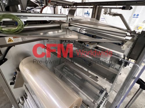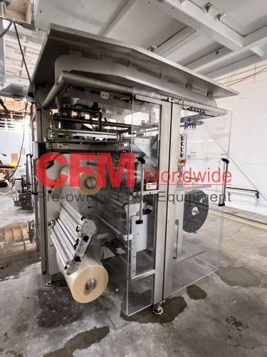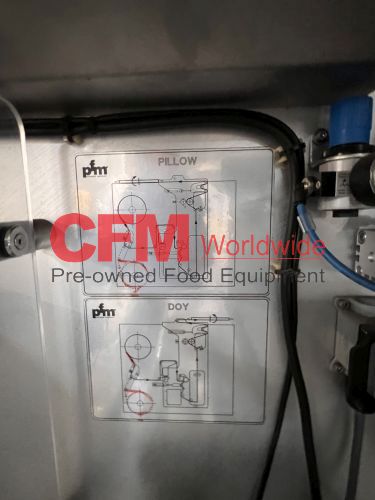 PFM Packaging Machinery Solaris vertical form fill and seam machine, capable of various bag sizes and styles including Doy and Pillow, set up for zip lock bags, with three forming tube, current forming tube measures 6" x 5", equipped with a Videojet Dataflex ink jet coder, bagger is wired 400/3/60, 30A, serial number 128319, 2019, unit is in very good condition, as is and will include the following: