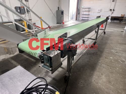 1) 18" wide x 19'6" long stainless steel belt conveyor with drive