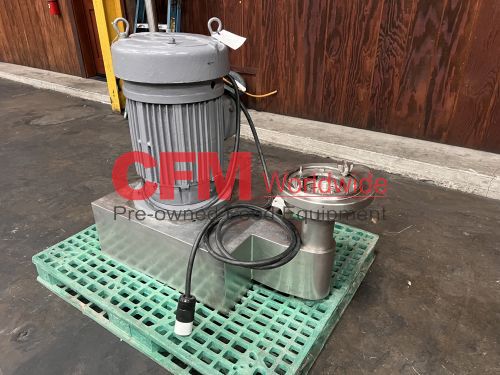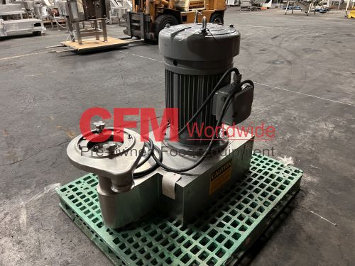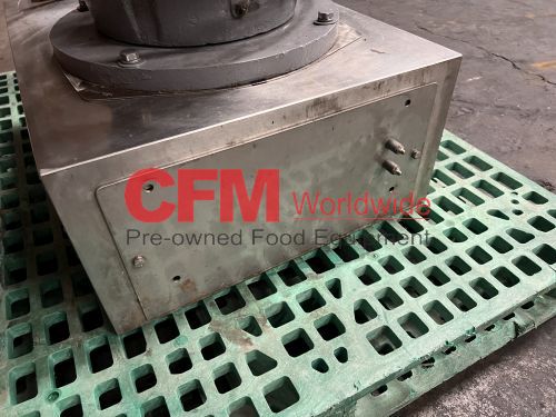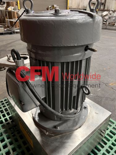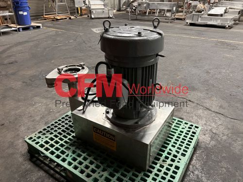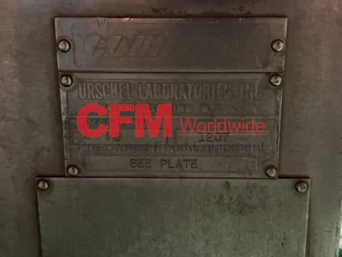 Urschel model MG Comitrol processor for liquids, equipped with a 212 blade MicroCut head, no infeed, pipe discharge, 30hp 3520rpm drive, no oiler, serial number 1207, as is, fair condition.