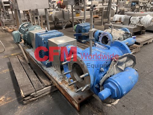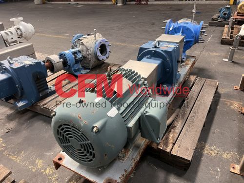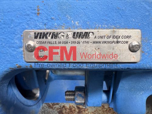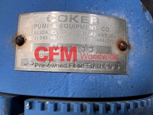 Viking (Coker) 6" x 6" stainless steel inline gear pump, model OS127A, driven by a 40hp 1770 direct drive, 460/3/60, serial number 18-58493, as is, good condition.