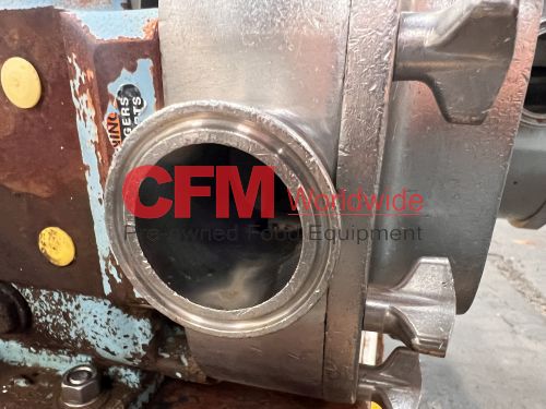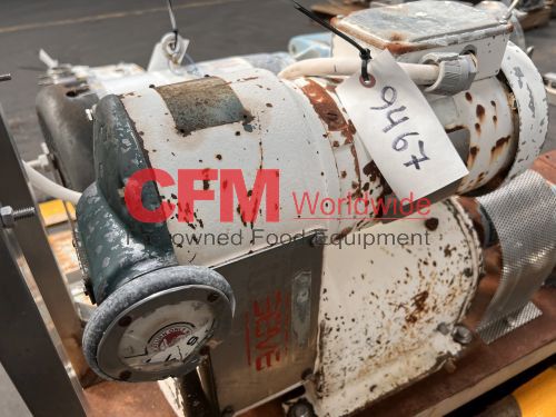 Waukesha model 018 positive displacement pump, stainless steel contact, 1.5" Tri-Clover fittings with a 2hp Reeves mechanical variable speed drive, 230/460/3/60, serial number 329941-03, as is good condition.