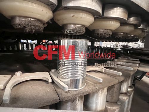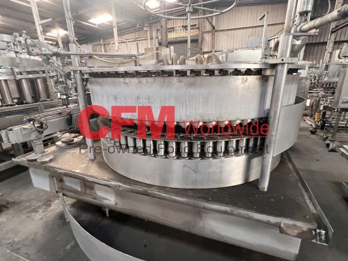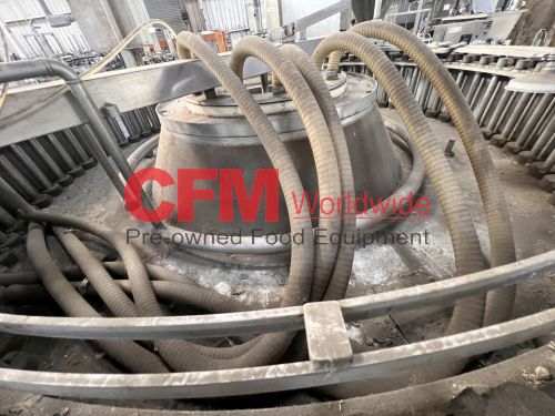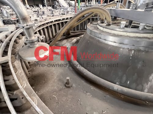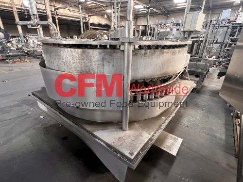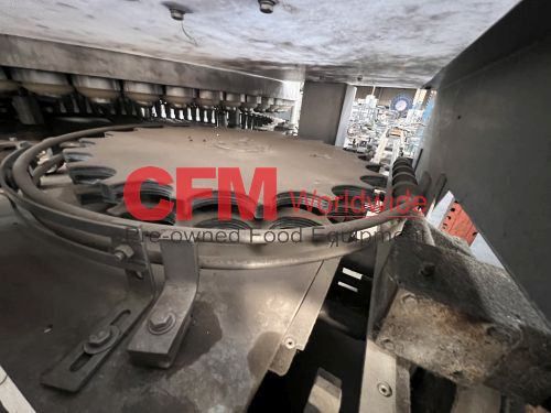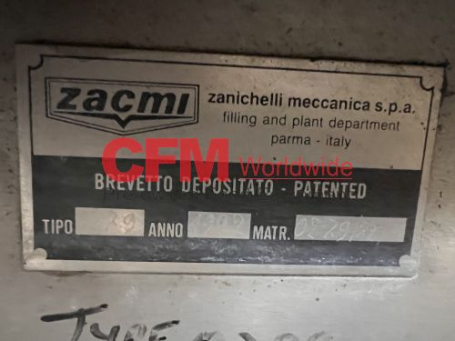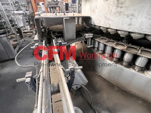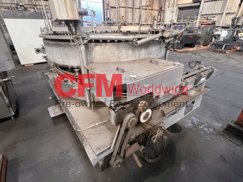 Zacmi model 02-79/72/S 72 station rotary vacuum filler for 300x407 cans, counter-clockwise bowl rotation, conveyor to worm to star infeed, tangential discharge, serial number 0279, 1992, no trap tank, pump or controls, as is, good condition.